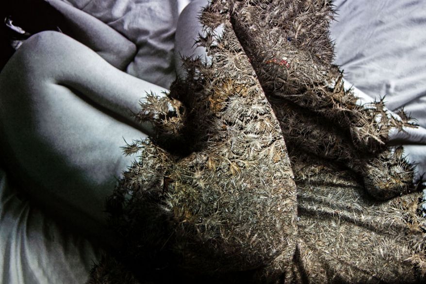 As I look at the reality of life in Israel, everything is better than it’s been, and also worse. There are so many contradictions in our daily life: the weather is wonderful, but everything is about to explode all the time. The people are wonderful, but they are also irritating because they tend to go over the line. That’s how the series came about: taking the softest, sweetest, most intimate moments of the day – and projecting it on a prickly, rough surface. That creates a new image that describes my existence in Israel, and my feelings about it.