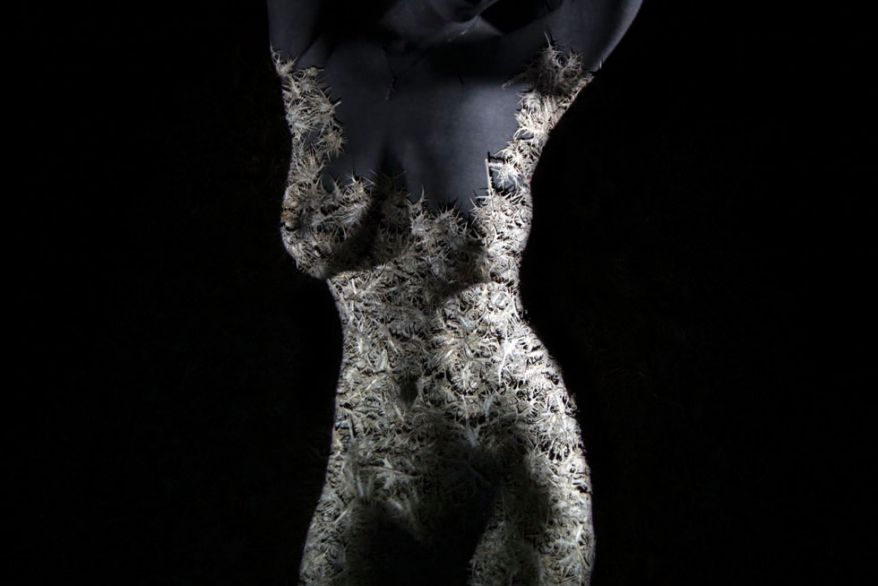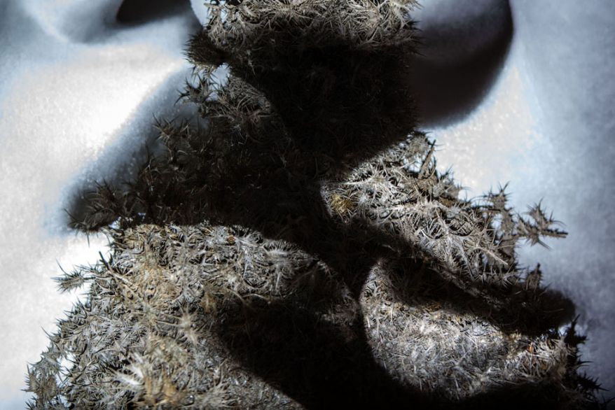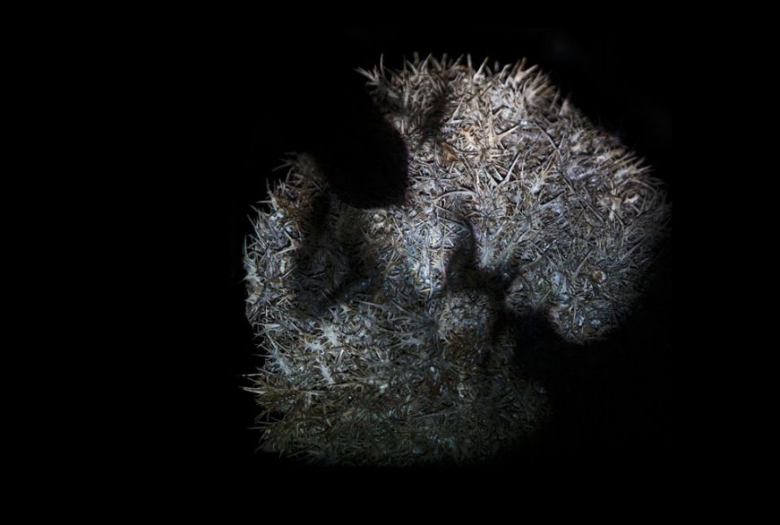 Photographer Eitan Vitkon: After I finish the composition, I create the image of the thorns. In the studio, I have controlled conditions. This allows me to shoot very long exposures with a small aperture. I wanted to achieve an effect where you see the image from afar, but close up you see only the thorns – so ironically, the closer you go, the more the image disappears.