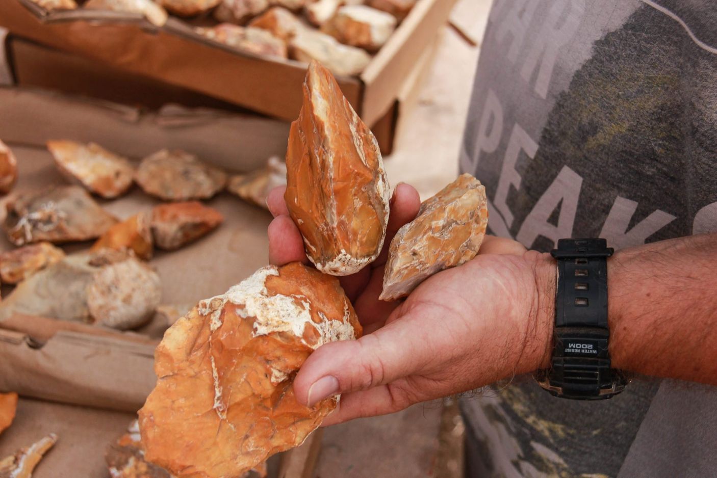 At least six different subsites are absolutely littered with flint hand-axes. The site was most likely inhabited by a now-extinct species of humans known as Homo-erectus, who took full advantage of what this area had to offer. These early hunter-gatherers are a direct ancestor of modern humans and were likely the first hominids to leave Africa (around 1.8 million years ago0. The site was a perfect spot for humans “The water brought flint modules from the hills, which were used to make tools on the spot, and attracted animals, which were hunted and butchered here. Archeologists have uncovered hundreds of hand axes.
