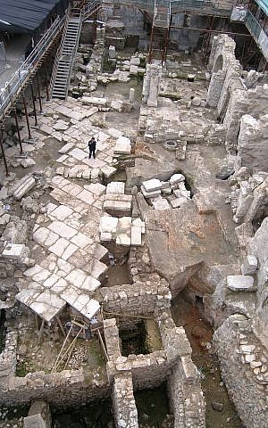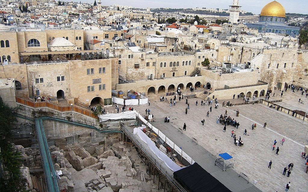 Archeologists are one step closer to solving what took place in Jerusalem following the destruction of the city by Romans in 70CE. Israel’s Antiquity authority for the past two years has been excavating and exposing a massive eight-meter-deep section of Jerusalem’s Western Wall next to Wilson’s Arch which is immediately adjacent to the men’s prayer section. Three stone courses of the Western Wall were discovered under an 8-meter layer of earth that had been hidden for 1700 years Wilson’s Arch until a couple of years ago was the only intact visible structure remaining from the Temple mount compound of the Second Temple period. It is built of enormous stones and is the last of a series of such arches that once constituted a gigantic bridge leading to the Temple Mount from the west or the old city. It served as a passage way for people entering the Temple Mount. During the Second Temple, the arch was used as a walk way bridge for worshipers entering the compound. The space under the Wilson’s Arch pedestrian bridge was used for a road, shops, and drainage. The sensational find was a real surprise. When archeologists started excavating their goal was to date Wilson’s Arch. They did not imagine that a window would open to the courses of the Western Wall.