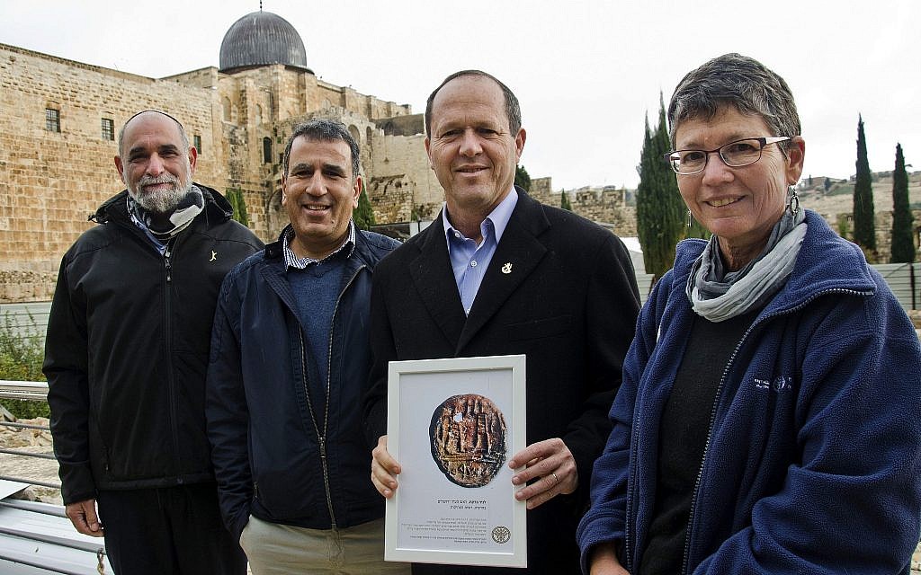 It was announced in January that a stamped piece of clay from the First Temple period, which belonged to the “governor of the city of Jerusalem- -was discovered in the Western Wall Plaza. This position was the most prominent local position to be held in Jerusalem of 2700 years ago. When found Archeologists were examining the dust from a first Temple structure 100 meters northwest of the Western Wall at a site they have been excavating since 2005. This historical find is a lump of clay, stamped and fired. The seal had been attached to an important document, and served as some sort of logo, or as a tiny souvenir, which was sent on behalf of the governor. It measures 13 x 15 mm and is 2-3 mm thick. The upper part depicts two figures in striped garments facing each other, between them is what could be a moon. In the lower part there is an inscription in ancient Hebrew saying “Belonging to the governor of the city” The governor most likely functioned much like today’s mayor. This role is referenced in the Bible in 2 Kings, Joshua is listed as the governor of the city in the days of Hezekiah, and in 2 Chronicles Maaseiah as governor of the city in the days of Josiah. This find shows that already 2700 years ago, Jerusalem, was a strong and central city. This is the first time that such an impression has been found and it supports the biblical rendering of the existence of the position of the governor of the city in Jerusalem. Recently past and present collided when this extremely rare seal impression was presented to the current Mayor of Jerusalem.