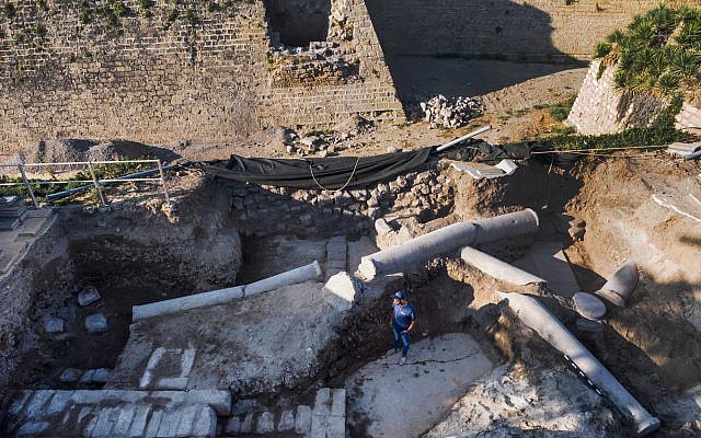 There are three figures depicted on the uncovered section as well as typical multicolored geometric patterns which were formed using mosaic pieces placed densely at about 12,000 stones per square meter. The figures all wear togas and apparently belong to the upper class. The central figure is frontal and the two other figures face him on either side. “Who are they?” That depends on what the building was used for, which is not clear. If the mosaic was part of a mansion, the figures could have been the owners. If this was a public building they might have represented the donors of the mosaic or member s of the city council. Of potentially even more interest is a long inscription in ancient Greek. It was unfortunately damaged by the Byzantine building constructed on top of it but is currently being studied now by epigraphers. Old Caesarea seems to never stop fascinating and thrilling us, time after time revealing slices of history of worldwide significance. This amazing mosaic is indeed a unique find in Israel