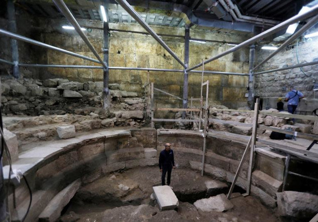 While the archeologists believe that the exposure of the courses of the Western Wall and the components of Wilson’s Arch are thrilling discoveries. They described the discovery of a theater like structure as the real drama. . The area under the arch was damaged in a massive earthquake circa 360CE. Jerusalem residents concerned the arch would collapse, deliberately covered the spacious area with dirt and debris thereby also covering all remnants of the theater for some 1,650 years. During excavations, a new reinforced floor was constructed under the men’s prayer area as not too interrupt daily worship It was announced at the end of May of this year that that unexpectedly a small Roman theater built in classic Roman style was discovered directly under Wilson’s Arch, which serves as its roof. Archeologists discovered the theater as they were searching for the known Second Temple road. Standing amid the rubble they started to find flat stones and thought they had reached the road but then the stones began to curve and they realized they had found something very different.