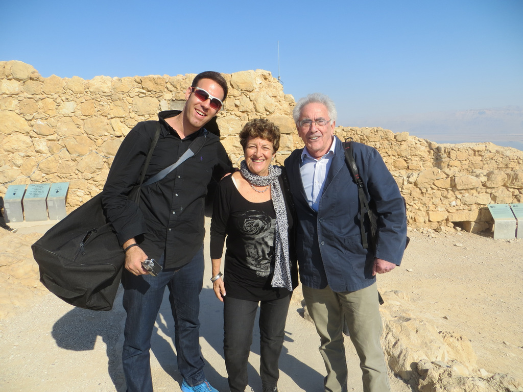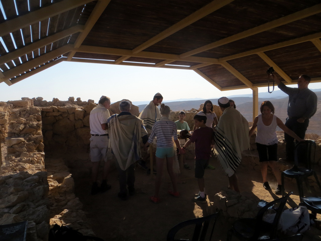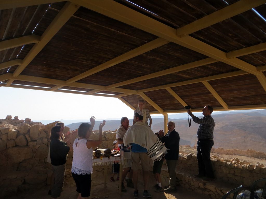 Yesterday I joined two dear friends, Averil and Rabbi Lee Diamond and our driver Sagi at  Masada where Rav. Diamond presided over a Bat Mitzvah. It was a sunny cool day with many tourists and events taking place on the top of Masada. During the Bat Mitzvah ceremony and morning prayers Rav. Diamond reminded us all that this place isn’t just about tragedy and destruction. In fact this place is about Life and the Living. A home to many Jews that found and created a community in order to preserve the continuation of the Jewish people. The tragedy that befell them was the final effort to remain Jews and not to allow the Romans to take life away from the hands of the community. These Bar and Bat Mitzvah’s here on Masada continue to celebrate the continuity of the Jewish life.