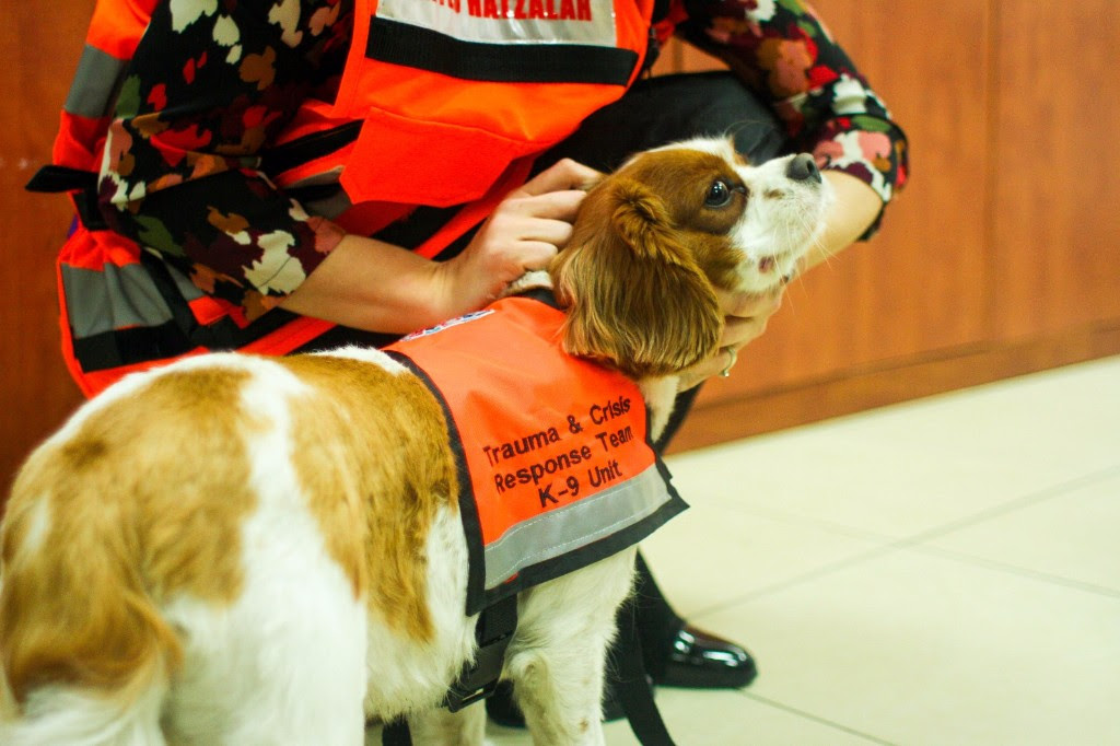 “We always look for more stabilization techniques to add to our toolbox and a therapy dog is a great addition. Research on the topic shows that therapy dogs have proven to be very helpful when used in traumatic situations, especially when dealing with children and the elderly. So when we opened our second training course we made sure to include two therapy dogs and their handlers in our group,” Ballin added.