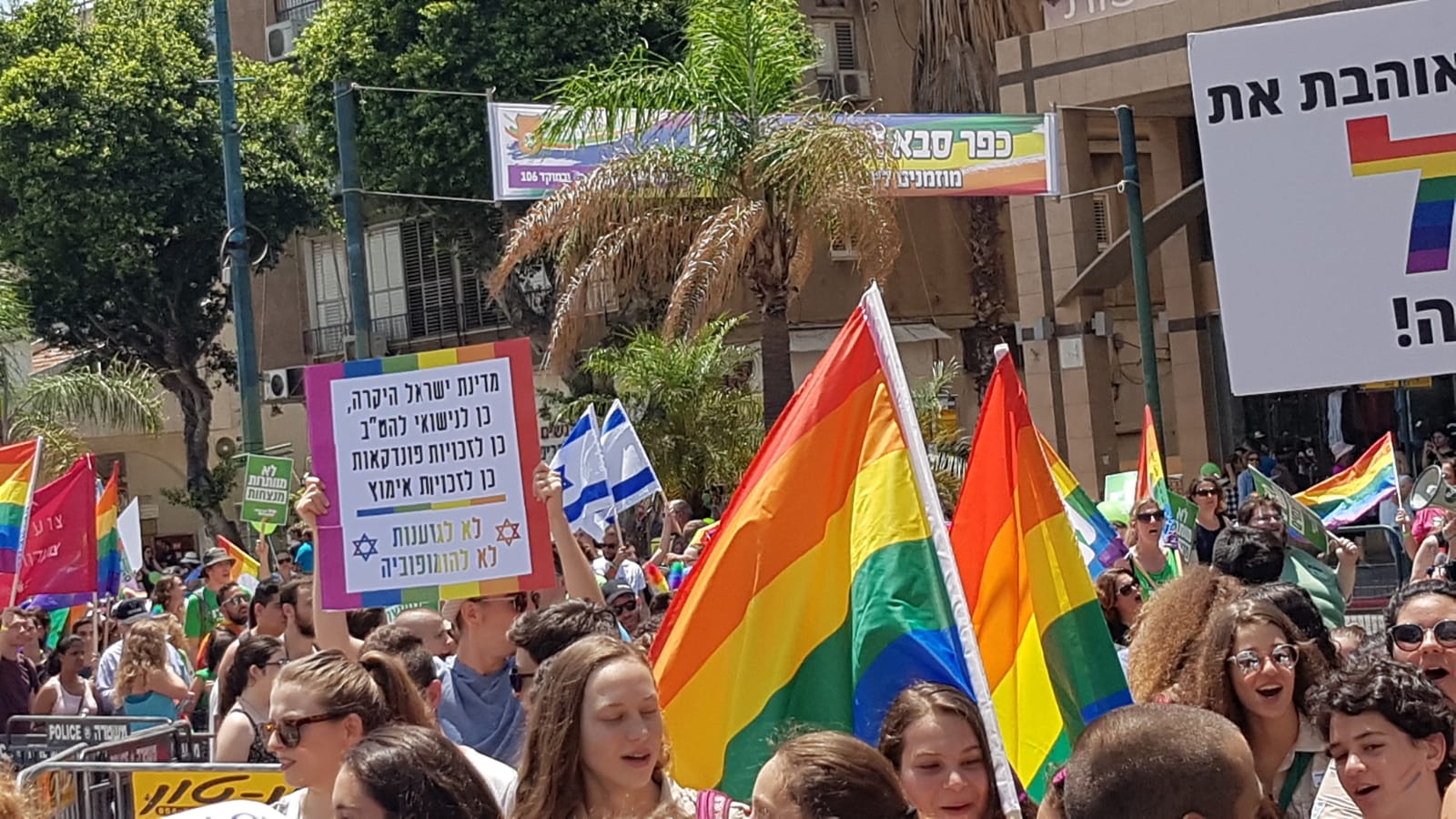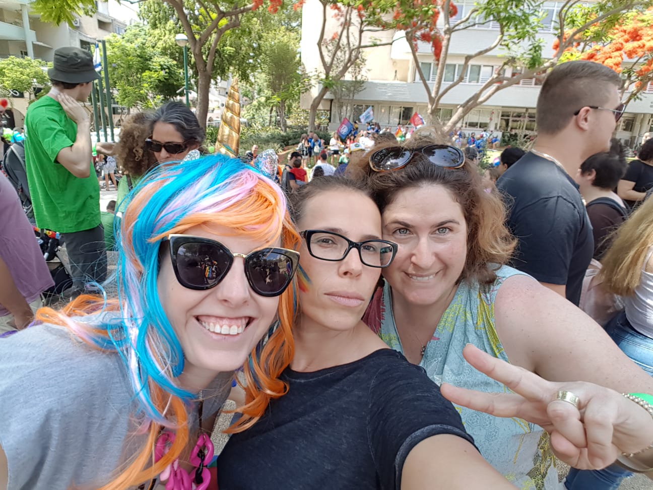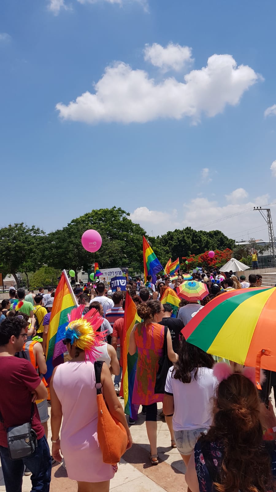 Our local reporter for the event Rachel said the crowd was estimated to be about 4000 souls that came to celebrate and support the rights for all of our citizens. Men, women, and children celebrated in the streets of downtown Kfar Saba. Here are a few pictures from the event today. We avoided showing any children.