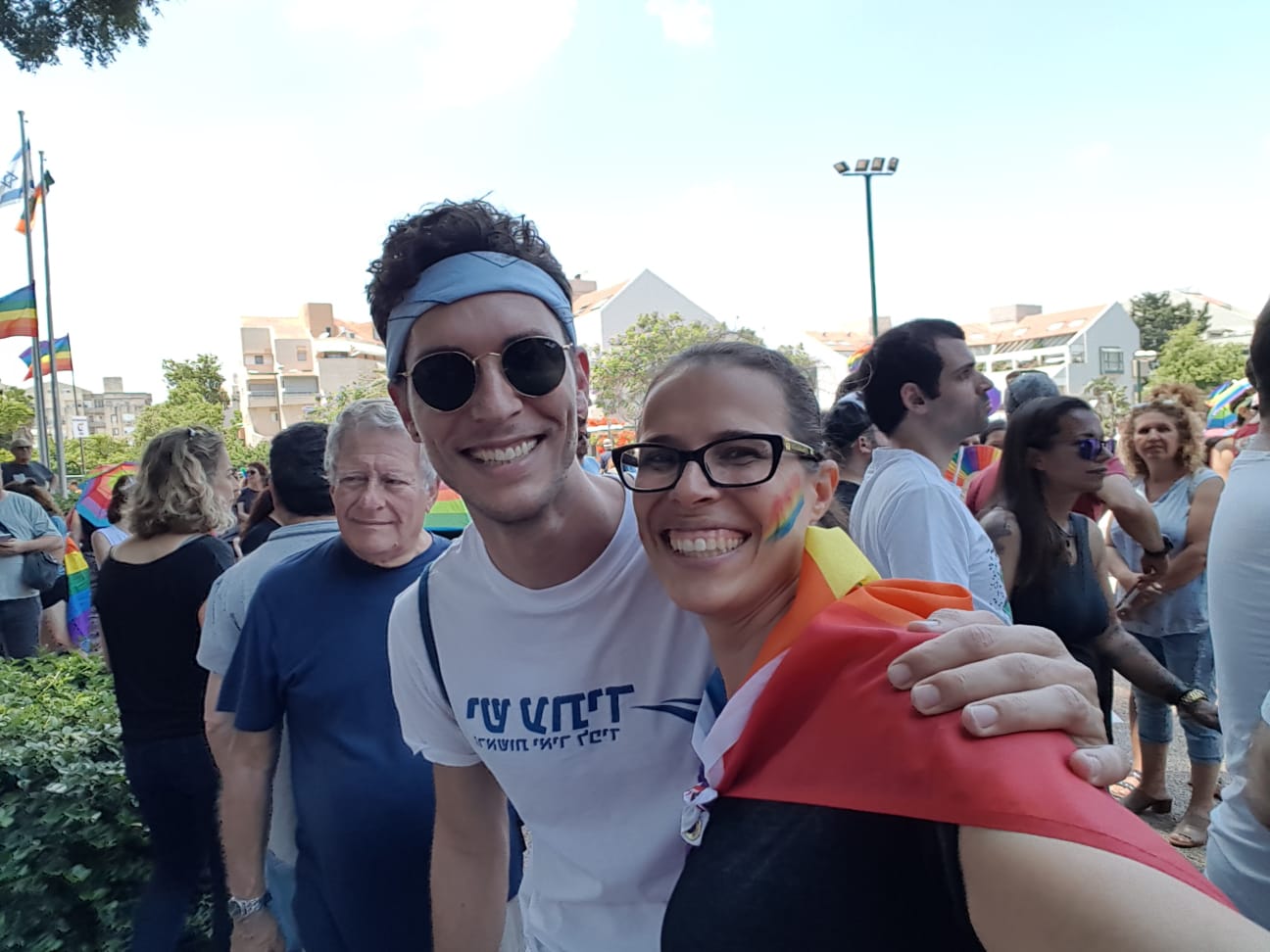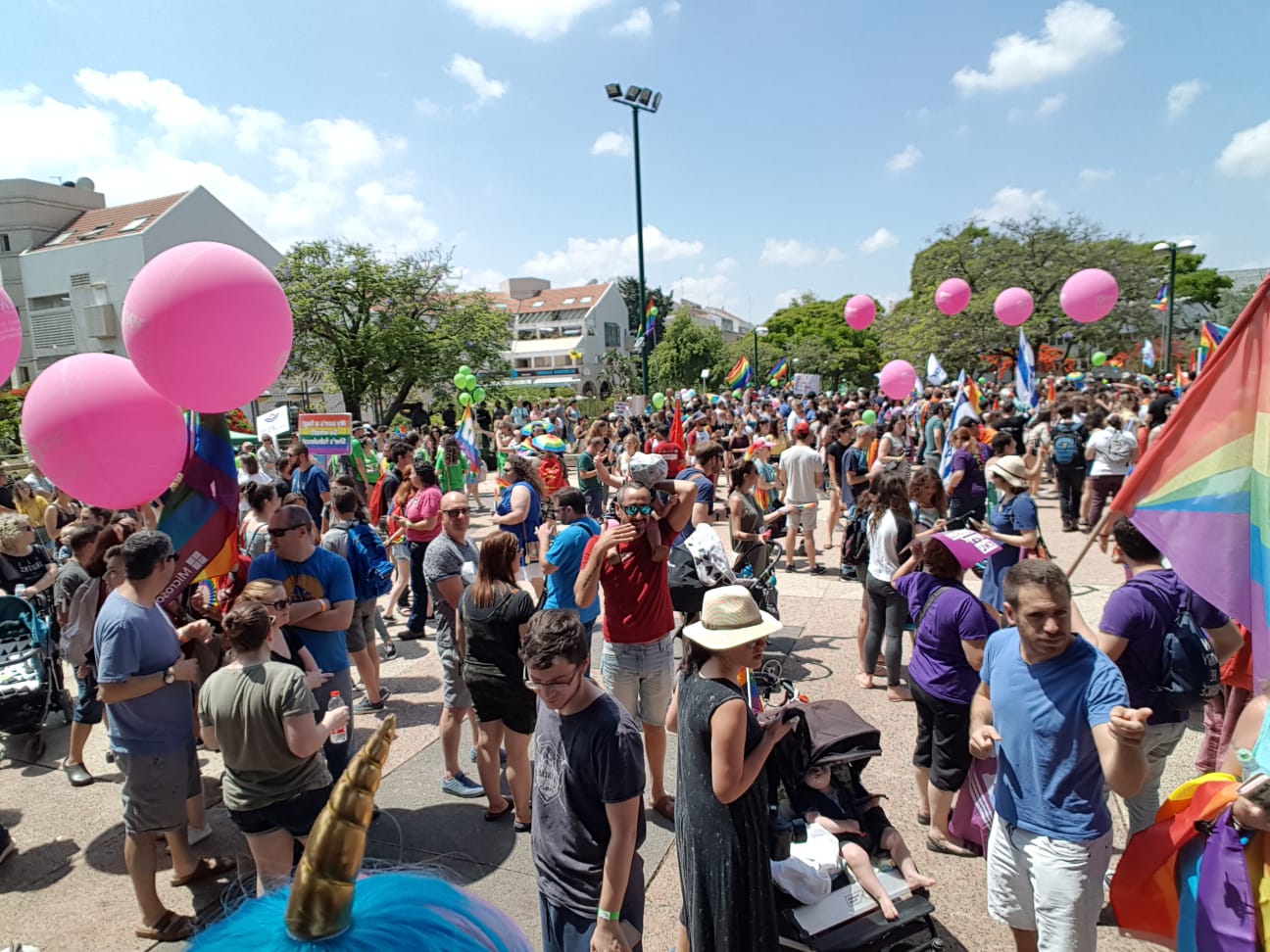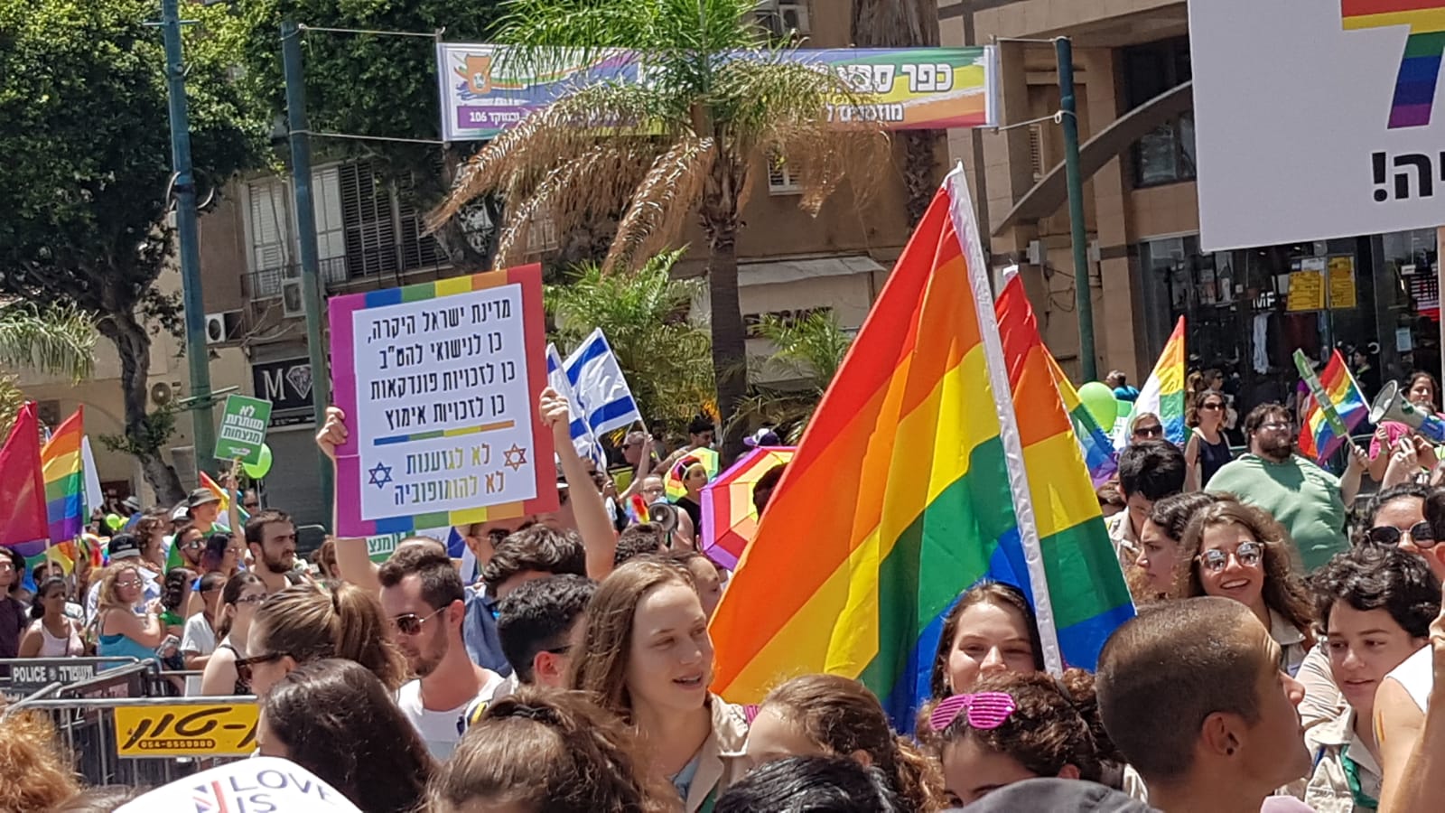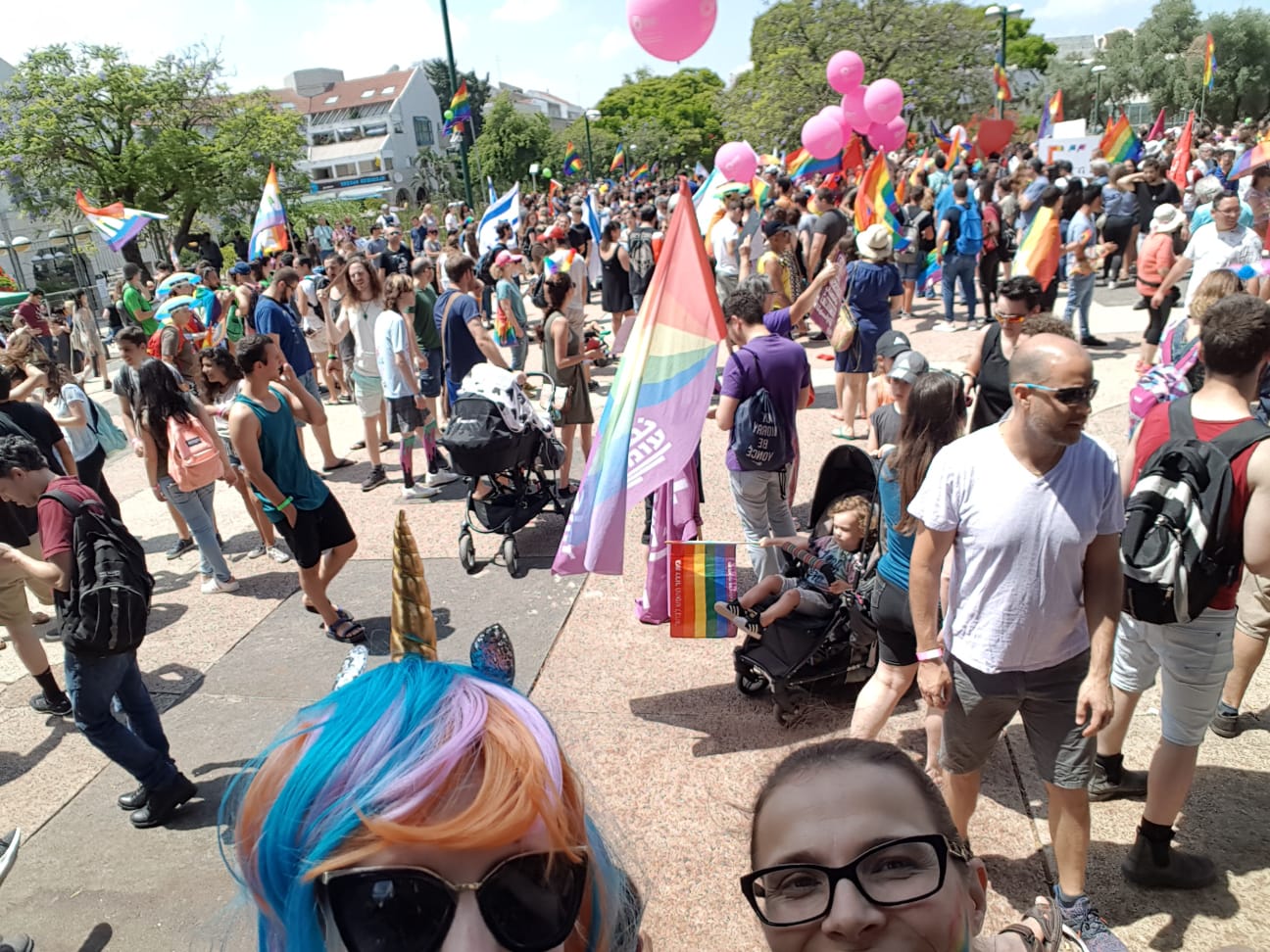 Our local reporter for the event Rachel said the crowd was estimated to be about 4000 souls that came to celebrate and support the rights for all of our citizens. Men, women, and children celebrated in the streets of downtown Kfar Saba. Here are a few pictures from the event today. We avoided showing any children.