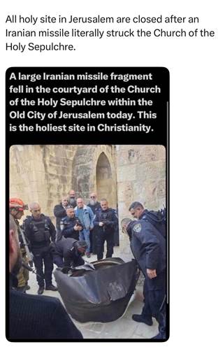 Following an incident in Jerusalem on Palm Sunday, which prevented the Latin Patriarch from conducting Mass at the Church of the Holy Sepulchre, it became evident that, due to its location and accessibility only via narrow paths in Jerusalem’s Old City, any direct hit on the Church or other religious sites could become a calamitous mass casualty event. The concern is not theoretical. Shrapnel from Iranian missiles, in fact, fell and landed in the Old City, in one instance next to the Church of the Holy Sepulchre itself, and in another instance near the Al Aksa Mosque and Western Wall.
