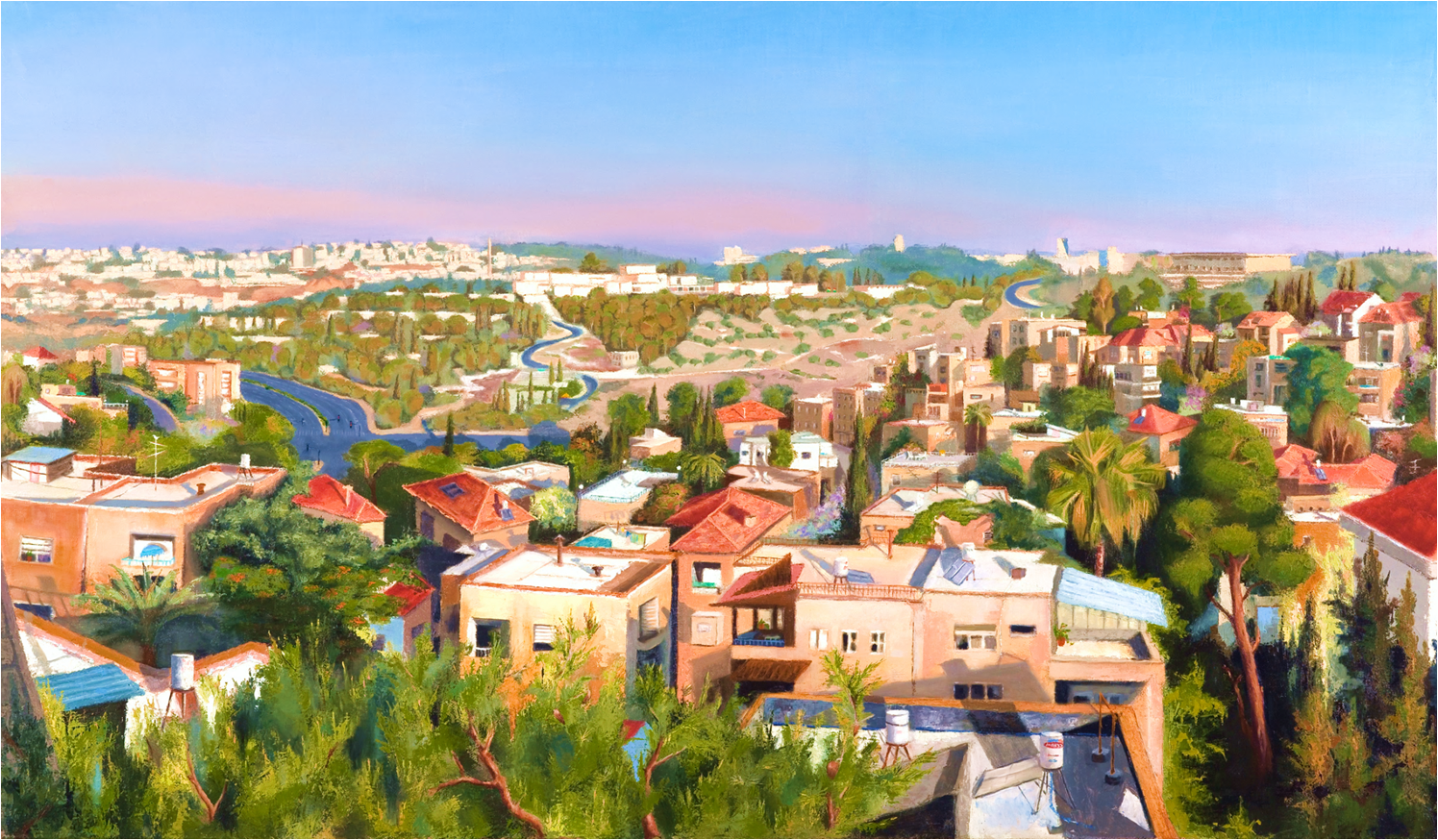 023_-_Jerusalem_panorama__   This week we feature Israeli artist Shulamit Near. Born in Kibbutz Beit HaEmek in the Western Galilee. Until recently Shulamit lived and painted in Jerusalem. Now she spends her time painting and lecturing at the Kibbutz where she was born. Shulamit’s web site is http://www.shulamitnear.com