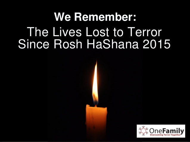 Please remember those who lost their lives to terror since last Rosh HaShana – and the empty chair at their holiday tables, of a beloved son who is no more, a witty daughter, a father who was the pillar of strength or a mother who used to huddle all of her children together under her wings of love. That empty chair is nothing compared to the punctured hole in the hearts of everyone they left behind.