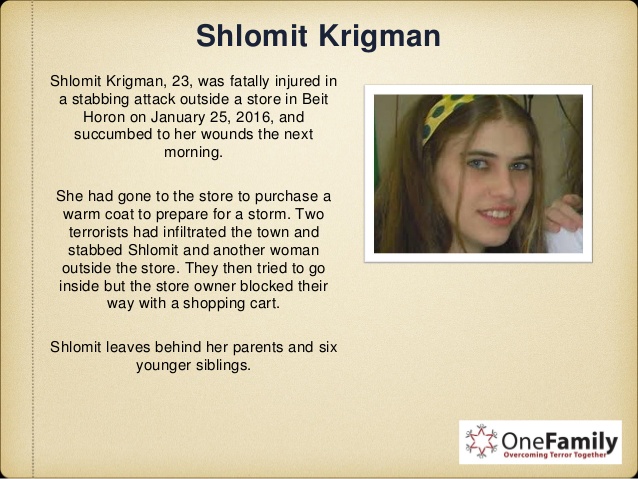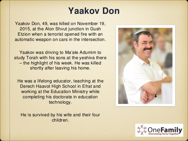 Please donate to OneFamily to ensure that we can meet the needs of all of Israel’s victims of terror. Please remember this past year’s families, whose future was shattered in a violent fraction of a second, as well as the thousands of other Israeli families who have been struck by terror in years past.