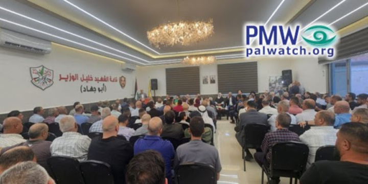 The opening of a hall that the Palestinian Authority named for a terrorist who killed 125 people. Photo: Palestinian Media Watch
