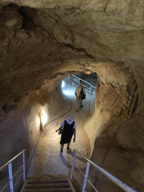 Herodion was abandoned after being sacked by the Romans following the fall of Jerusalem in 70 CE, but in 132 CE it was occupied by Bar Kochba, the great Jewish general. Bar Kochba utilized the cisterns at Herodion for his guerilla attacks on the Roman army. After ascending the path to palace ruins and exploring, we made a far cooler descent through the same cistern, via tunnels inside the mountain built to enable Bar Kochba’s bands to make surprise attacks against the Romans. Tactics like this resulted in Bar Kochba’s incredibly successful, but short-lived, victory over the Romans.