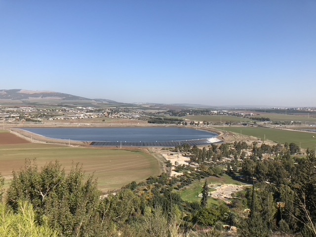 Our excellent guide Reuven took the opportunity to point out the Valley Train on the railroad tracks far below us. Now a modern line between Haifa and Bet She’an, it once serviced Haifa, Damascus, and Mecca, especially by transporting pilgrims on their pilgrimage (haj) to the Muslim holy place. There are currently plans to extend the line further south through the Jordan Valley towards Jerusalem. Optimistically, Reuven conjectured that the line might one day extend north to Damascus.