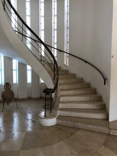 The home, which Weizmann and his wife moved into after his term of president, was designed by the German-Israeli architect Erich Mendelsohn, who immigrated to Israel, after a short sojourn in Britain. He was a participant in the exodus of Jews fleeing the Nazi regime in the mid-1930s. At that time, thousands of so-called “yekkes,” educated, bourgeois, Central European Jews, arrived in the Yishuv (pre-state Israel), almost all with skills and many with considerable material possessions. Among them were a number of architects, whose talent and enterprise were responsible for Tel Aviv’s nickname as the “White” city, a nickname for modern international architecture emanating from the Bauhaus school of architecture and design in Weimar, Germany.