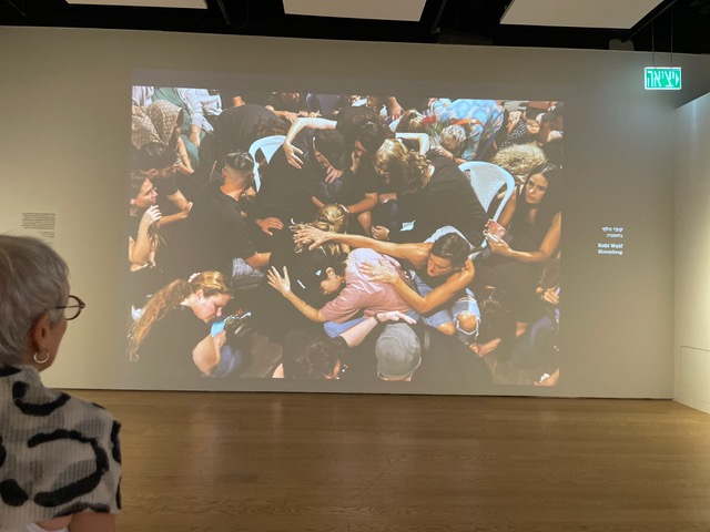 The pictures are by Steve Kramer from a poignant and illuminating exhibition on the 10/7 war, paintings, and pictures by Israelis living close to the border with Gaza.