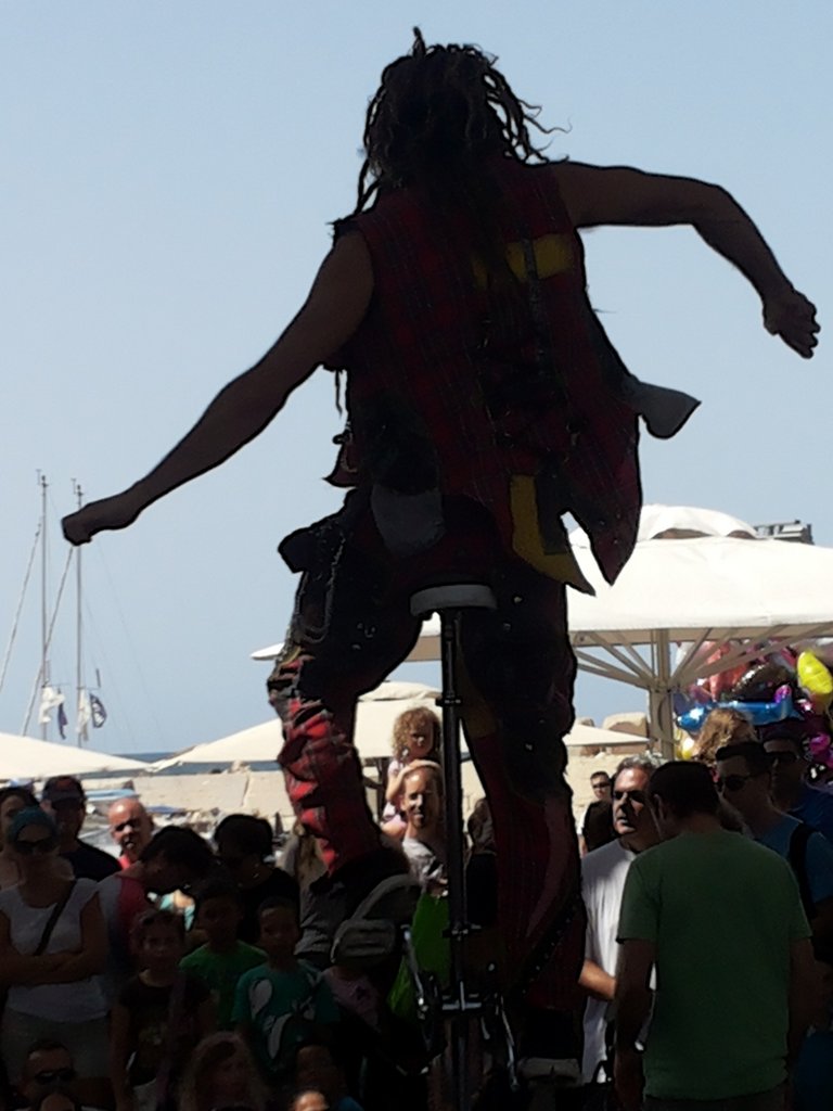 These photos were taken with my son and grandson in Yafo during a short boat ride. The waves were high on the Med and while my grandson was having the time of his life I was barely able to keep it together. Here are some of the photos we took from the boat. While we were walking around the port of Yafo-Tel Aviv we came upon this entertainer . The rest of the pictures were taken in Kfar Saba during a stroll at sunset.
