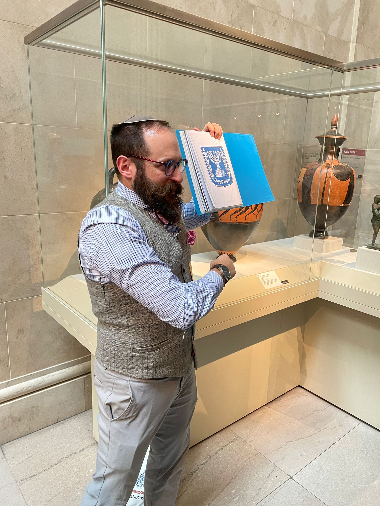 “Climbing on old walls, exploring rooftops, and unearthing pottery was second nature to me, instilling a deep appreciation for the past,” Nachliel said. “As I grew older, I combined my love for Tanach (the Hebrew Bible) and Jewish history with my background in biblical studies and communications. My early teaching experiences in Israel and later in New York and New Jersey allowed me to bring that excitement into the classroom. But it wasn’t until 2015, when I organized a Jewish history tour at the Metropolitan Museum of Art for my students, that it became clear that my passion was best suited for the museum. In essence, that journey—rooted in childhood curiosity and shaped by teaching—evolved into what I now call “The Museum Guy.” It’s a continuous blend of education, archaeology, and storytelling—or better yet, storytelling.”