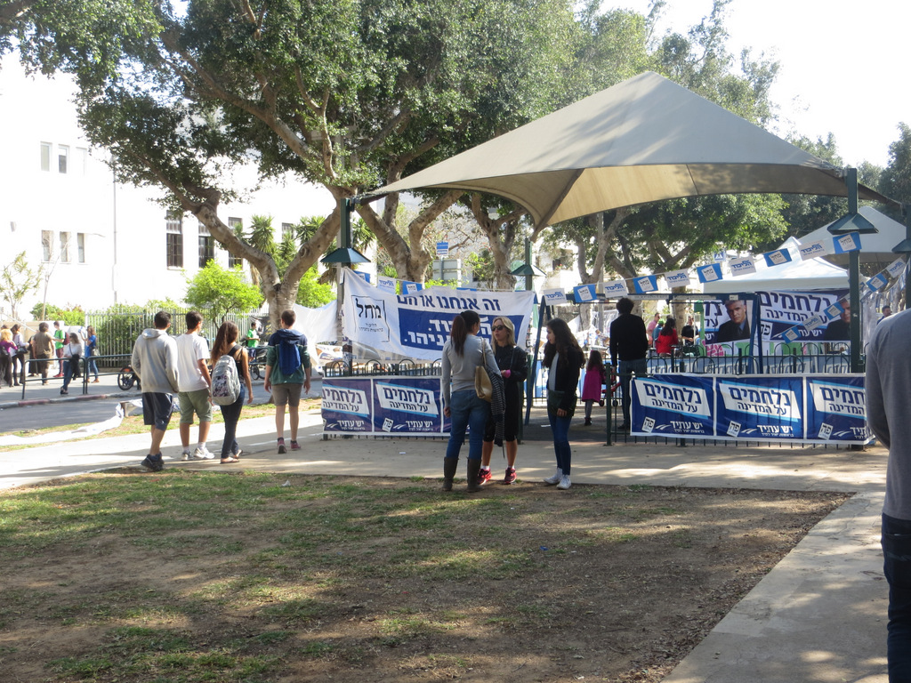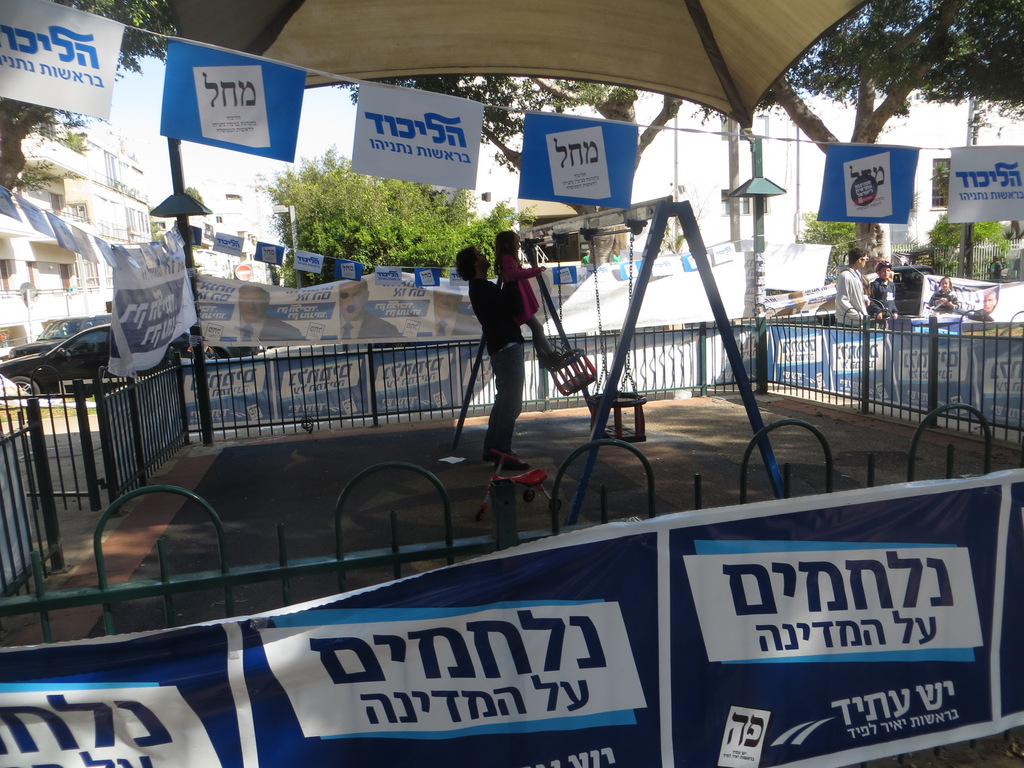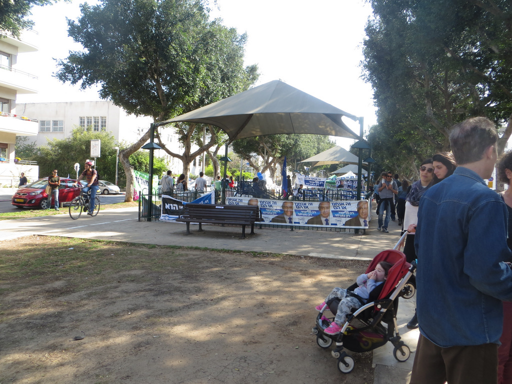 It was a wonderful sunny day in Tel Aviv. Today, election day, is a national holiday and the streets were full with people enjoying the activities of family life in Israel. The political posters can be seen all around town and even on the gates of the playgrounds.