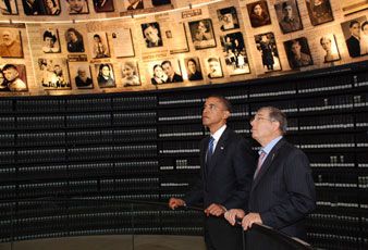 Pope John Paul II during a visit to Yad Vashem 23/3/2000,The Dalai Lama, speaking with Avner Shalev during a visit to Yad Vashem 20/3/94, U.S. President (then Senator) Barack Obama with Avner Shalev in the Hall of Names 23/7/2008,Avner Shalev with French President Nicolas Sarkozy and his wife Carla Bruni in the Hall of Names, Survivors of the Rwandan genocide are taken on a guided tour of Yad Vashem’s Holocaust History Museum, Oskar Schindler next to the tree planted in his honor in the Avenue of the Righteous Among the Nations.  Six million Jews were murdered in the Holocaust, yet the names of close to 2 million remain anonymous. Since the 1950s, Yad Vashem has worked tirelessly to collect and commemorate the names of men, women and children who were murdered by the Nazis and their collaborators.